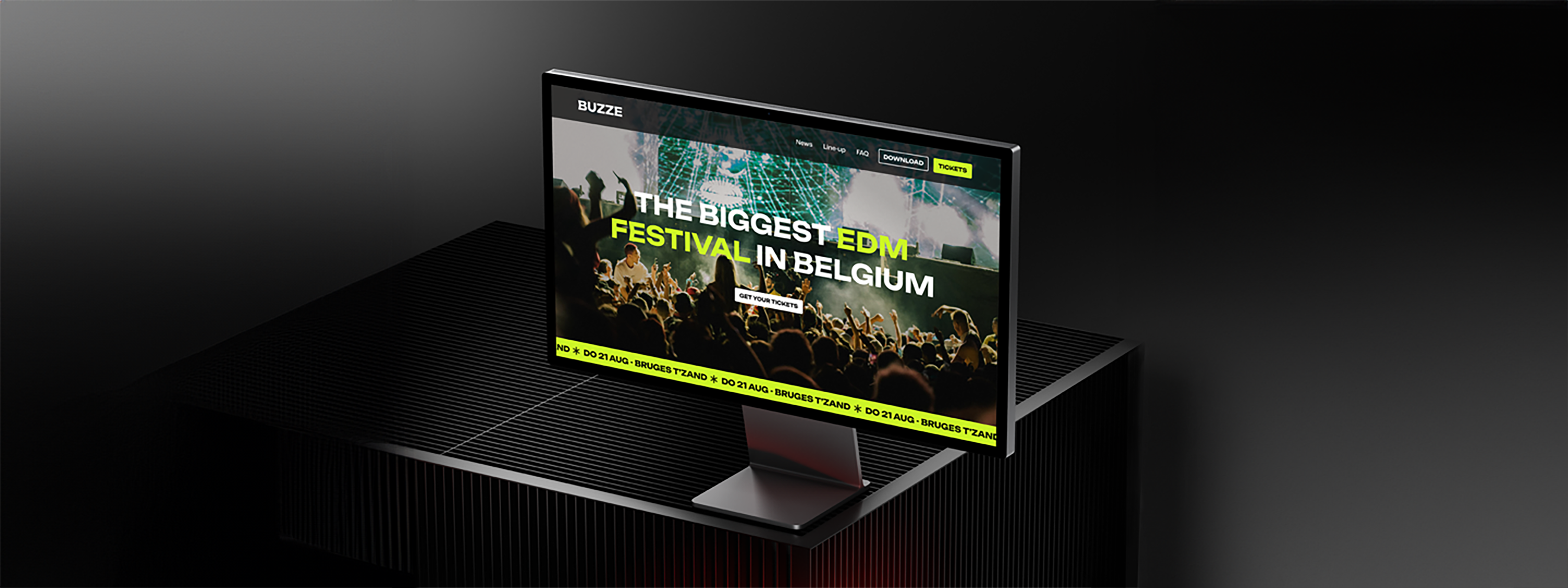 Voor BUZZE creëerde ik een digitale ervaring die de energie van het event perfect doortrekt. Donkere contrasten, felle groene highlights en een clean design zorgen voor een look die opvalt en blijft hangen. Tijdloos, energiek en klaar voor een breed publiek.