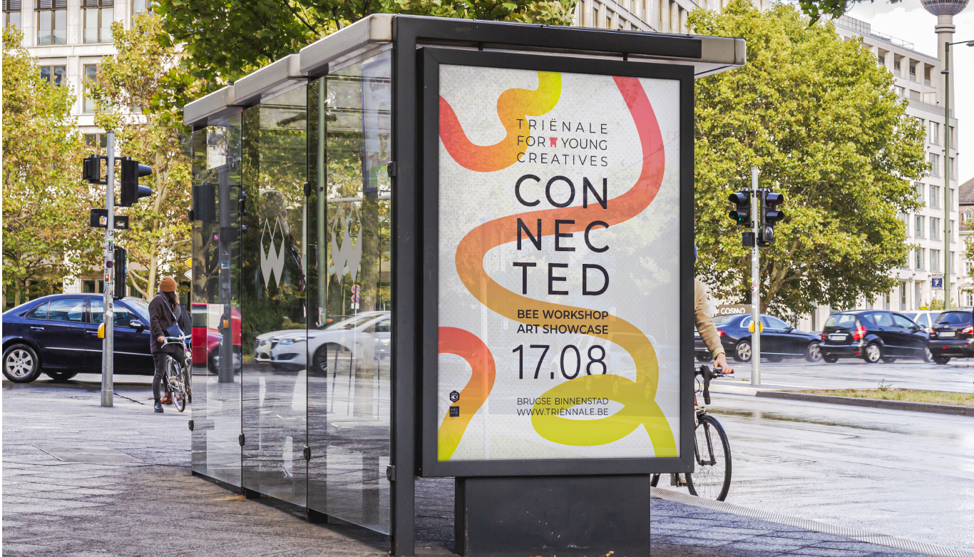 Connected, the final project of my first year as a graphic design student at Howest. It was a rebranding of an event at the Triennial in Bruges, where I used a monument for bees as the basis for the whole branding. The story around it inspired me to use wavy colored shapes to create movement in my designs, I tried to get a playful vibe with a clean layout to make it stand out in a unique way. After I finished the poster, it was time for an upgrade by designing the website, banners and more!