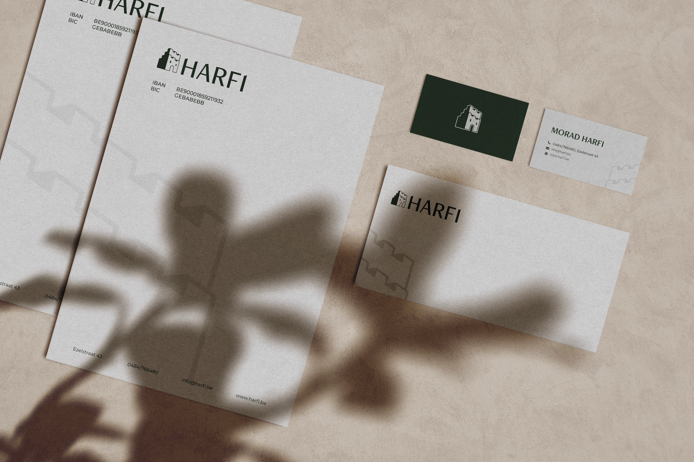Het logo van Harfi combineert subtiele elementen uit Brugse daken en Marokkaanse architectuur tot een strak en hedendaags geheel. De vormtaal is eenvoudig maar betekenisvol, terwijl de zachte, natuurlijke kleuren zorgen voor een warme en betrouwbare uitstraling. Een visuele vertaling van hun missie: verbinden, ondersteunen en bewaren.